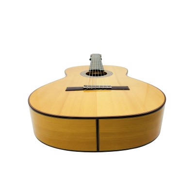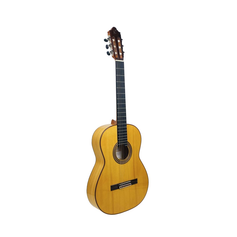 En todas las guitarras de esta marca se utilizan los mejores materiales y unas maderas de una calidad excelente que son elegidas previos largos procesos de selección. En este caso los aros y el fondo están fabricados con ciprés macizo, mientras que la tapa la vemos presentada con el uso de una estupenda madera de abeto macizo. Para el mástil se ha usado cedro y el diapasón es de ébano.
