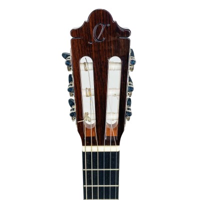 El puente está construido con palisandro y el mástil es de cedro, contando con cejuela en pala y puente de hueso, golpeador y un acabado brillante que le proporciona mucha energía.