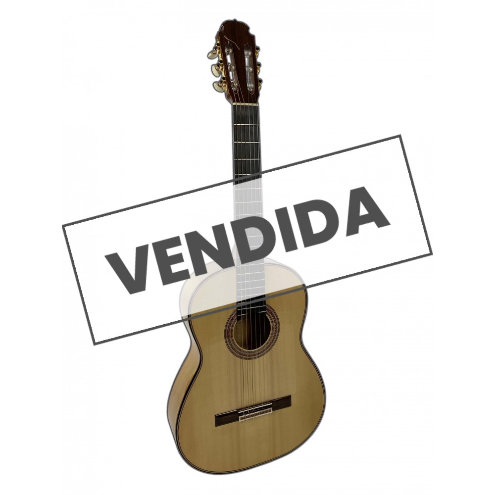 Guitarra de Antonio J. García de Ciprés Español y abeto Alemán. Esta guitarra tiene un acabado espectacular al igual que su sonido. Tantos las primeras como los bordones despiden una cantidad de armónicos increíbles. Muy compensada y cómoda de tocar.